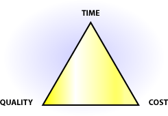 This triangle defines the aspects of a project that a manager must control. It also serves to illustrate the inter-dependence of these aspects, e.g. to increase quality, one must increase time or cost or both.